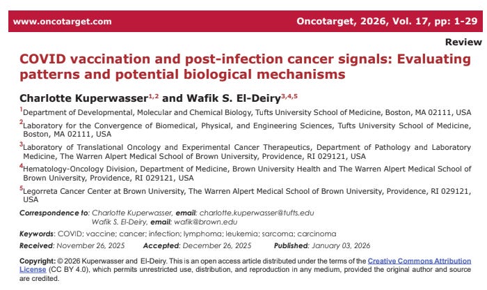These Oncotarget papers, especially the January 3, 2026, review by Charlotte Kuperwasser and Wafik El-Deiry documenting over 300 peer-reviewed cases of cancers linked to COVID vaccination or infection across 27 countries, have sparked intense debate.
